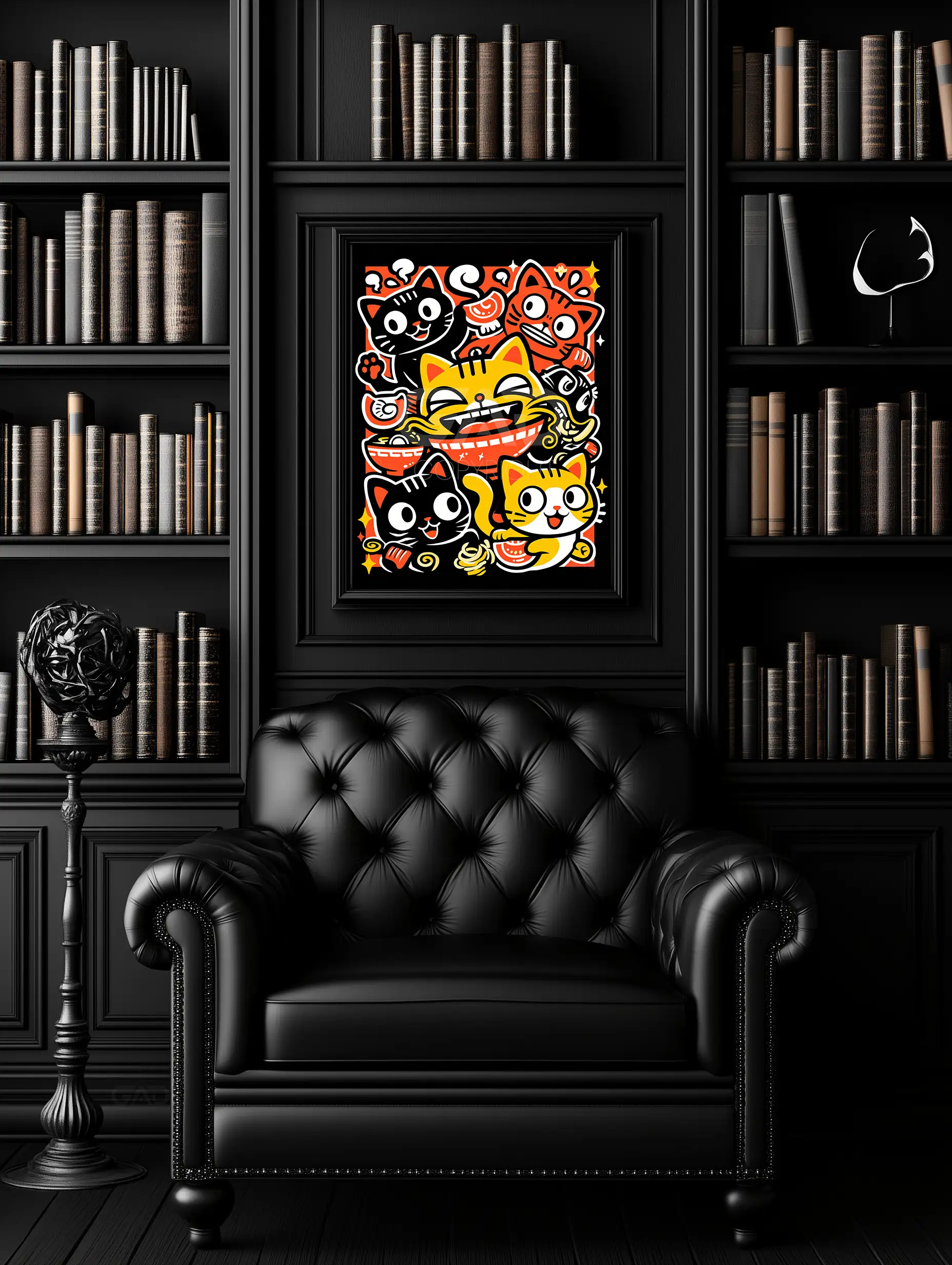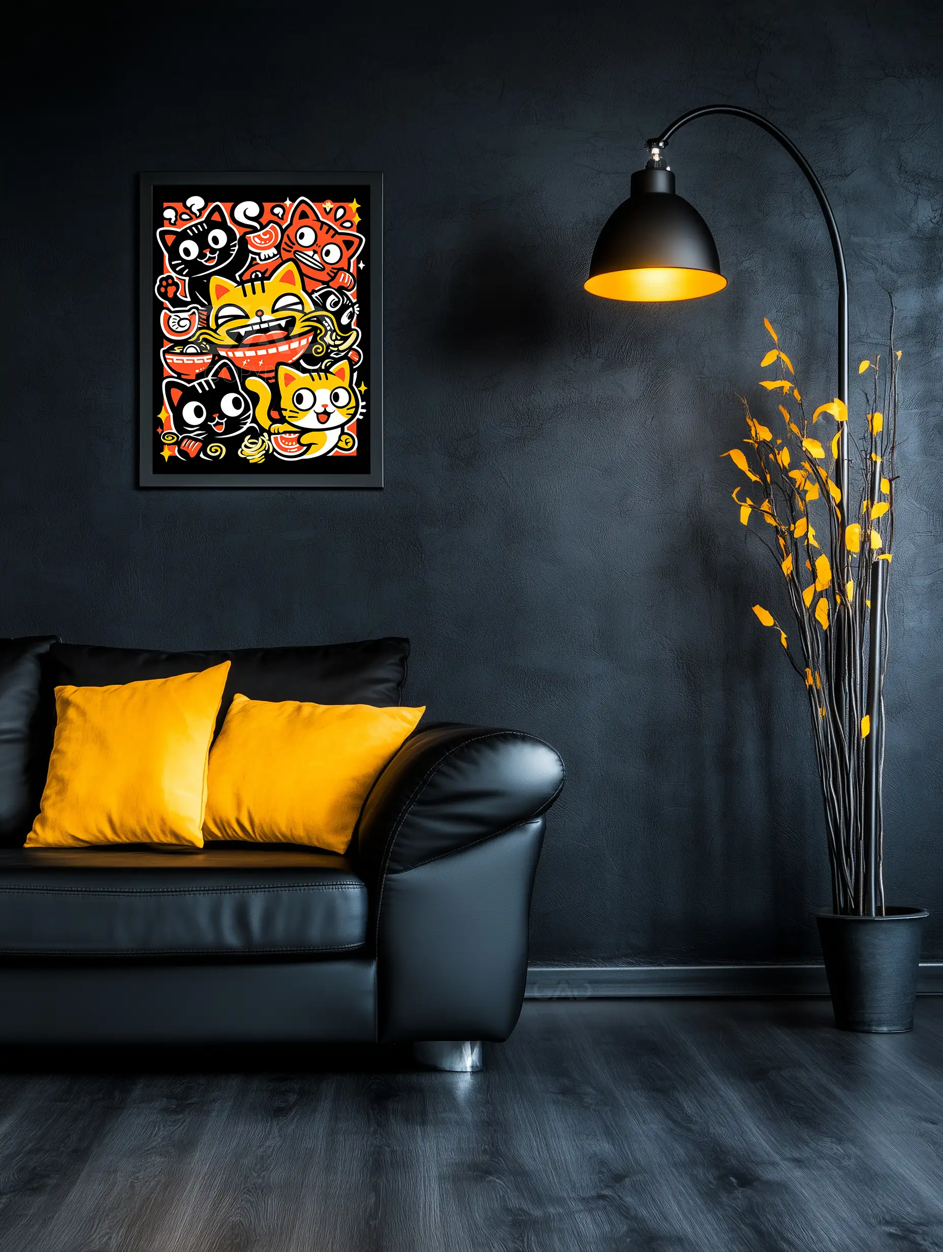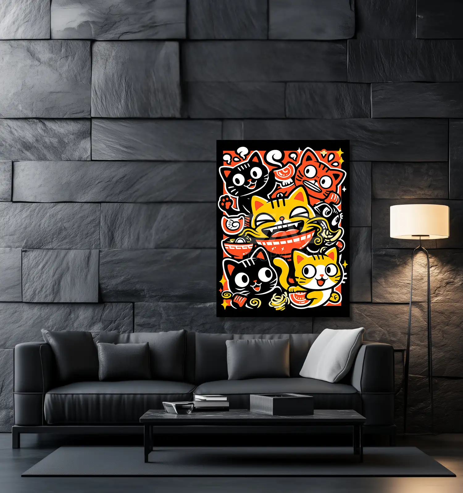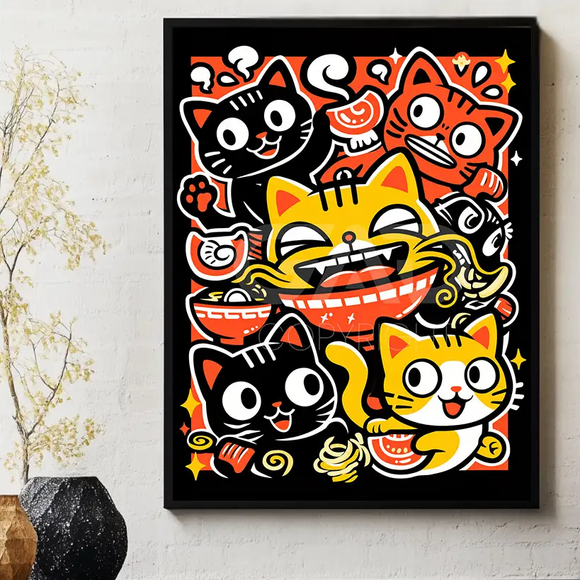 - Unique Design: This poster showcases a cute and humorous scene of cats indulging in ramen, adding a touch of fun to your decor.