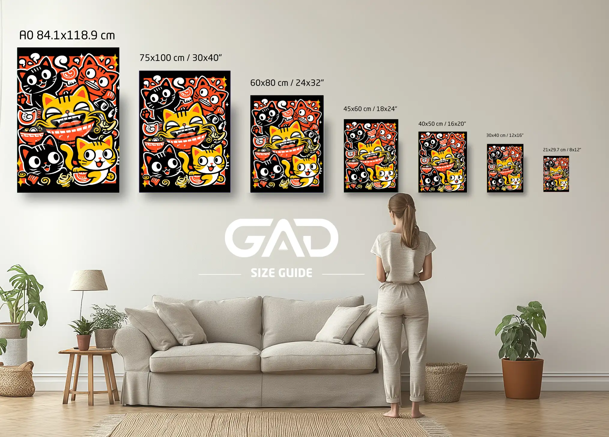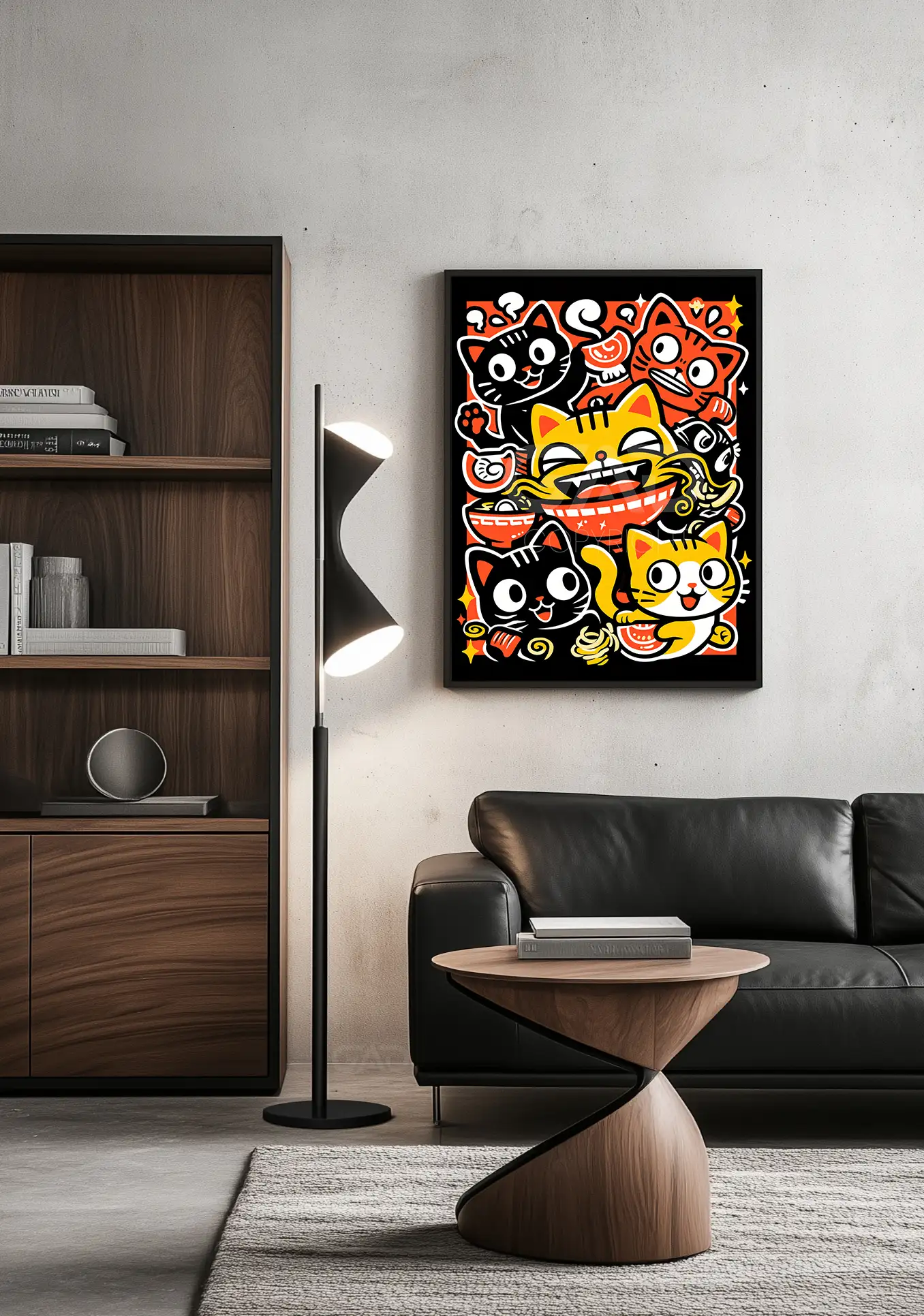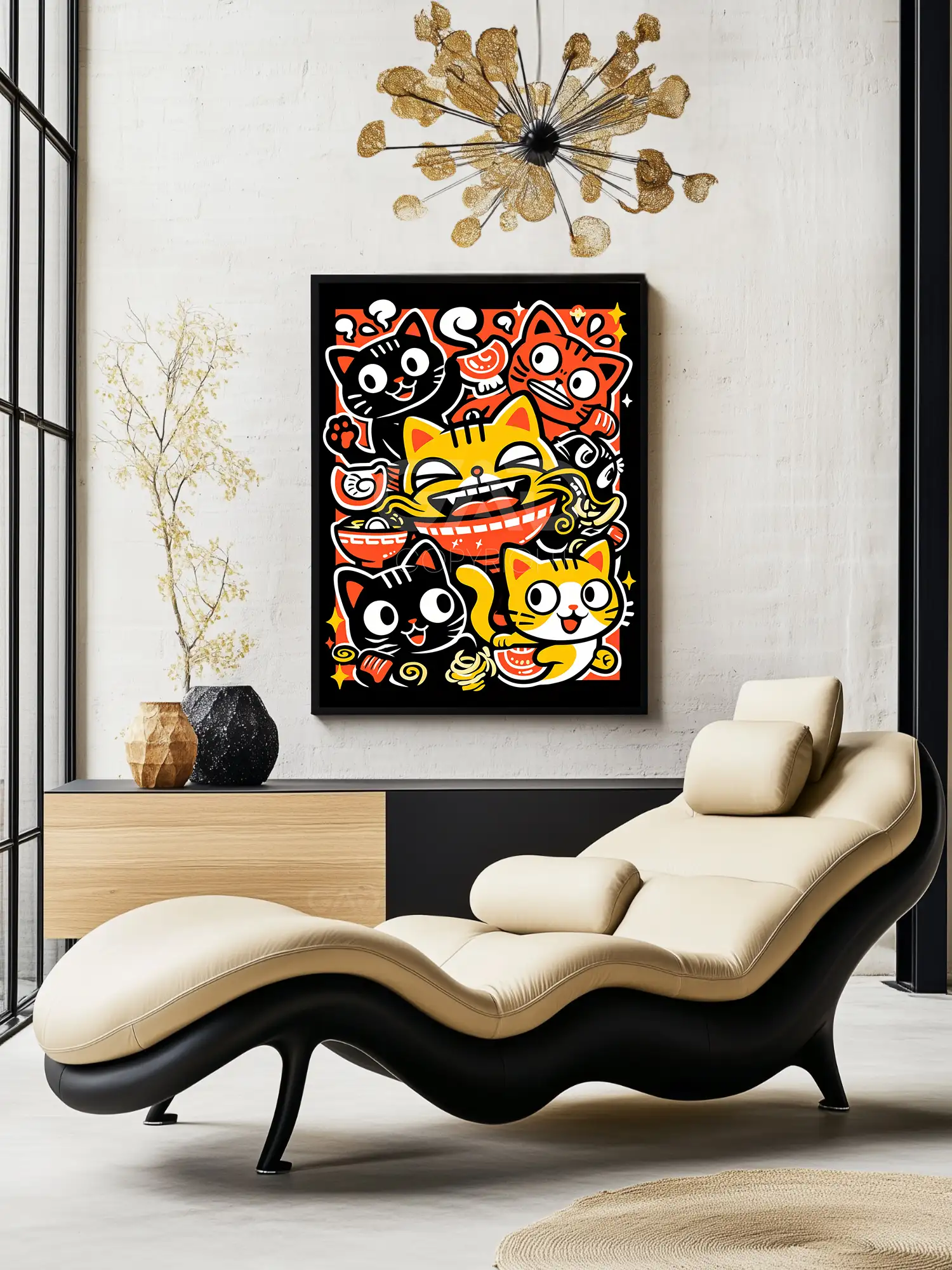 - Unique Design: This poster showcases a cute and humorous scene of cats indulging in ramen, adding a touch of fun to your decor.