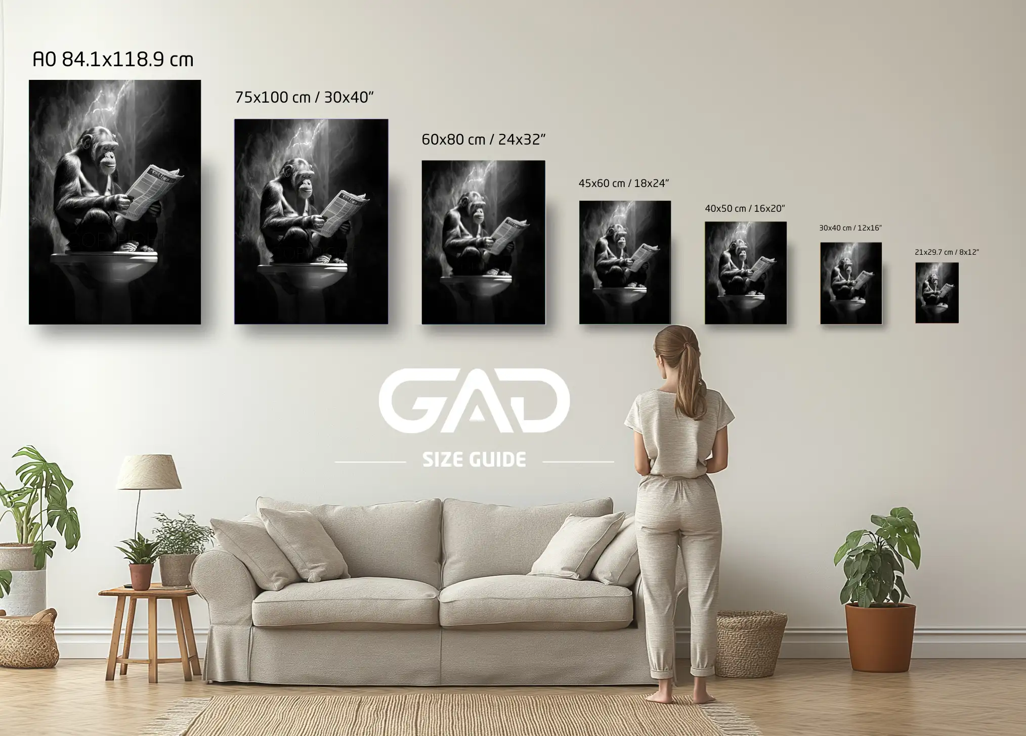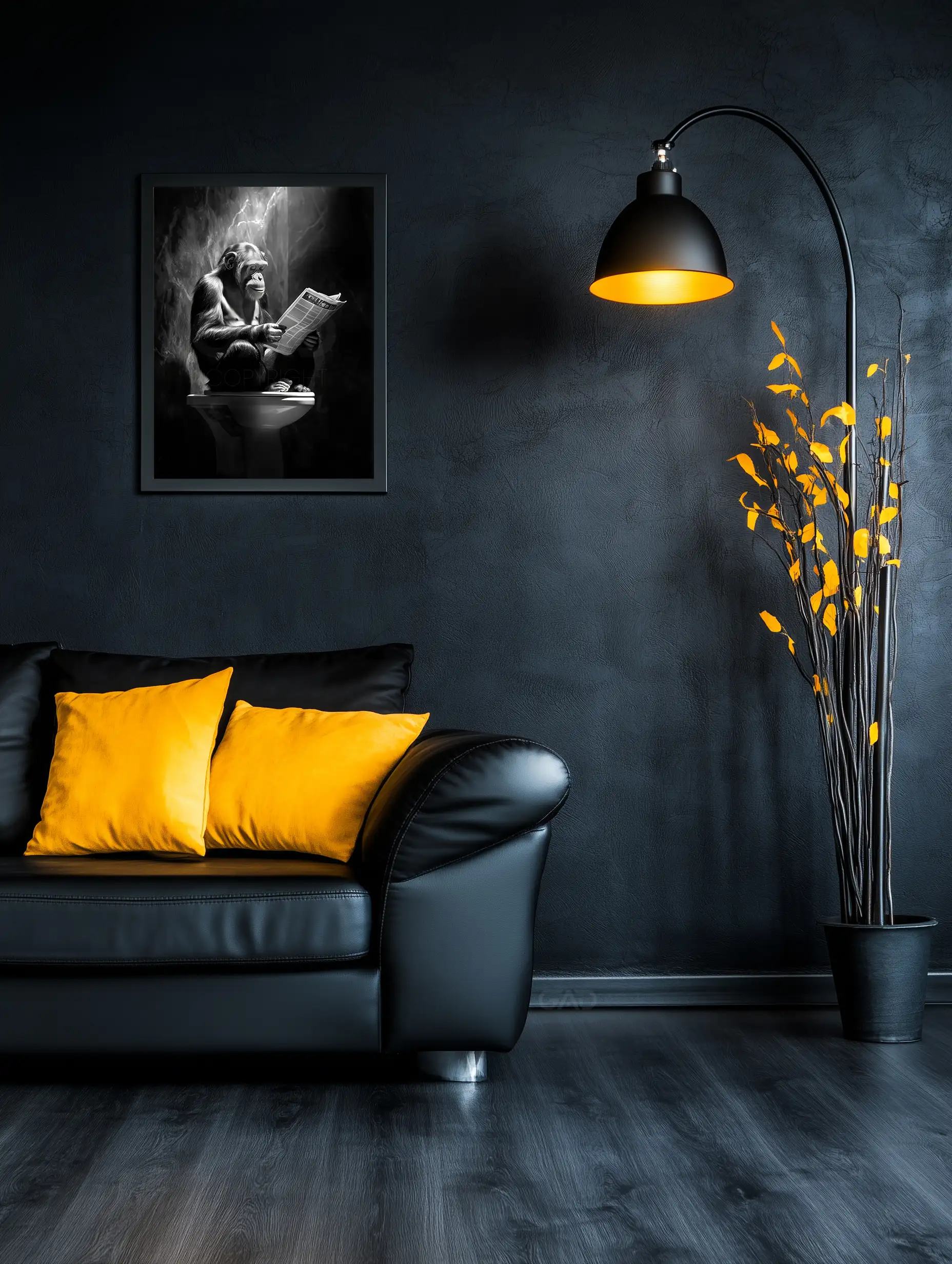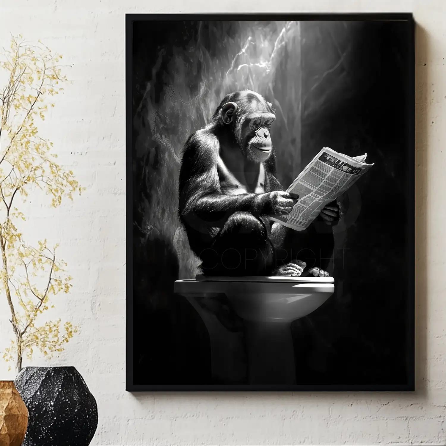 Perfect for fans of quirky art, animal lovers, or anyone looking to add a dash of humor to their living space, the Chimpanzee Toilet Poster is sure to entertain and brighten up any room.