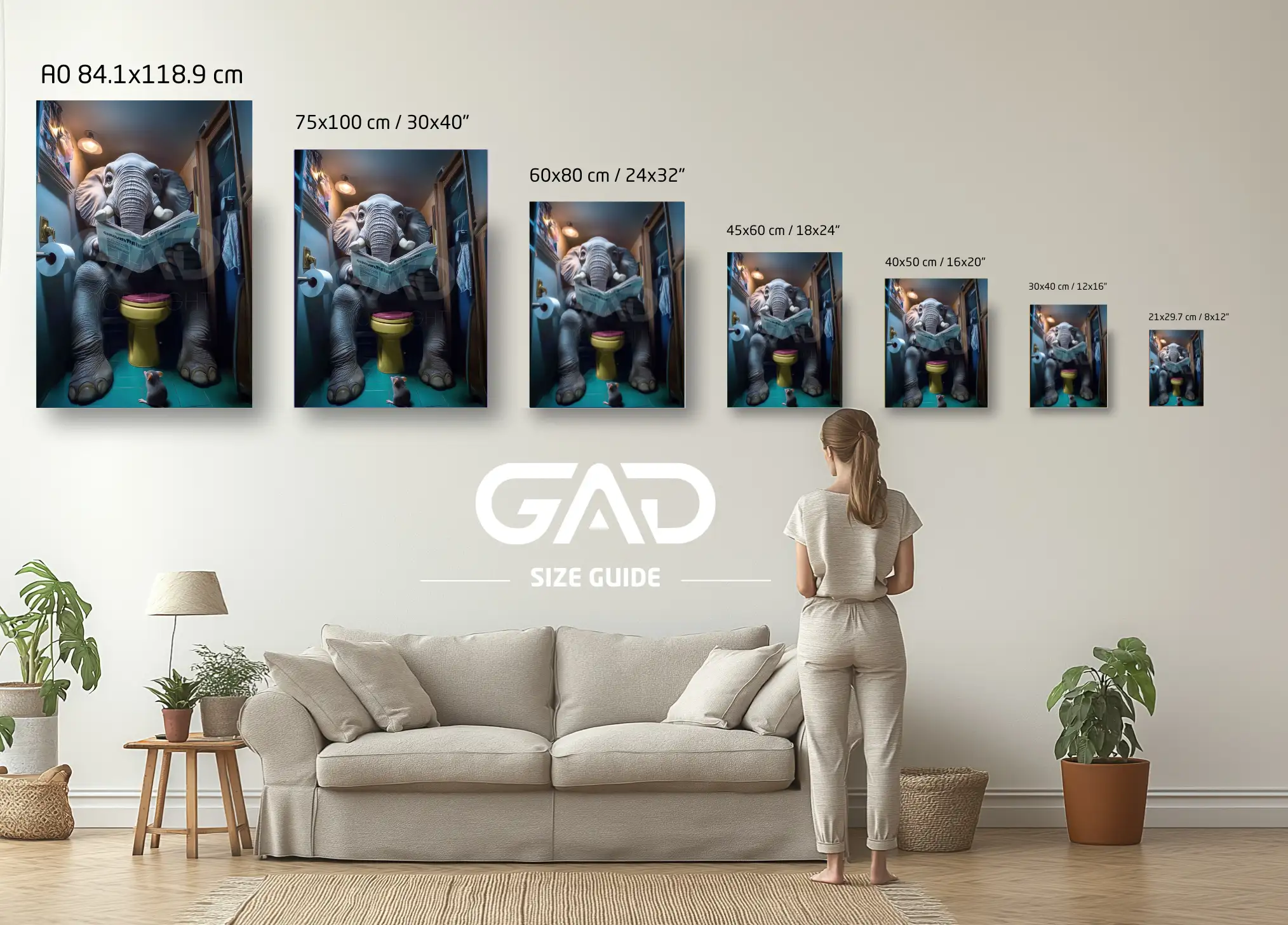 Bring a playful yet sophisticated touch to your bathroom with this Elegant Elephant’s Bathroom Retreat poster. Featuring a majestic elephant enjoying a private moment, this artwork combines humor with artistic elegance. The detailed illustration and charming concept make it a delightful addition to any space.