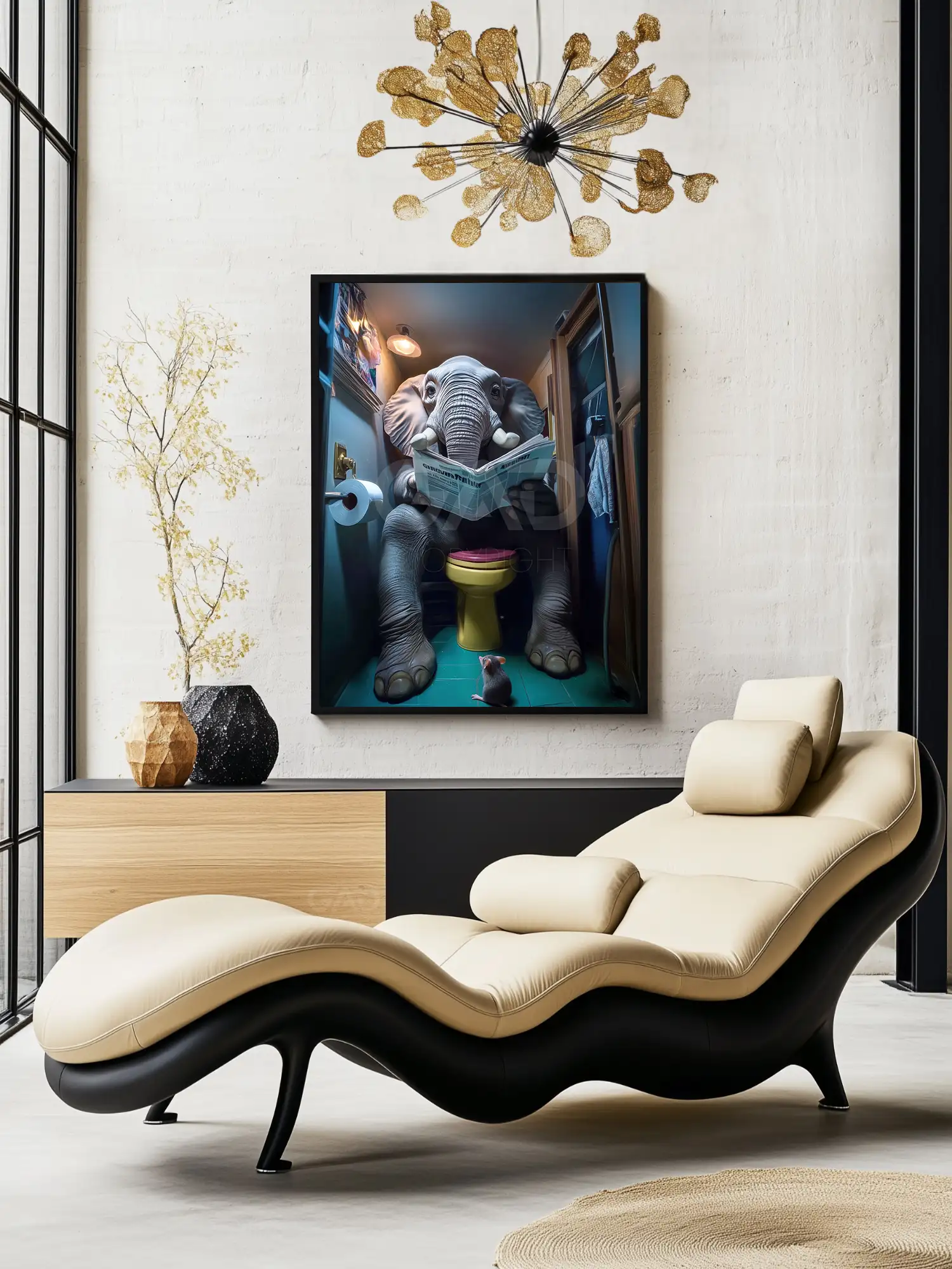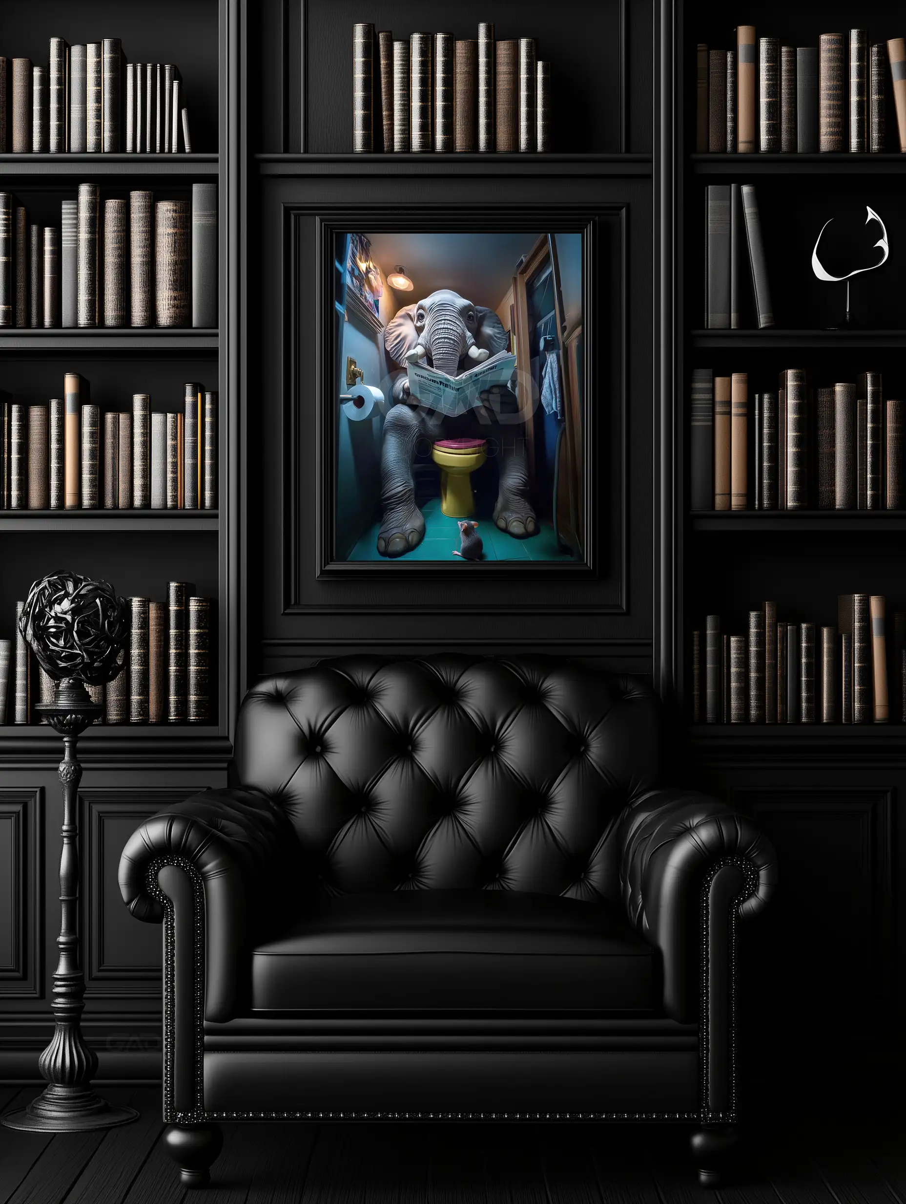 Turn your bathroom into a space of charm and humor with this exclusive Elegant Elephant’s Bathroom Retreat artwork!