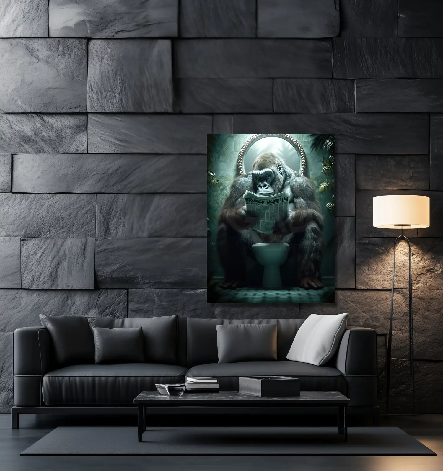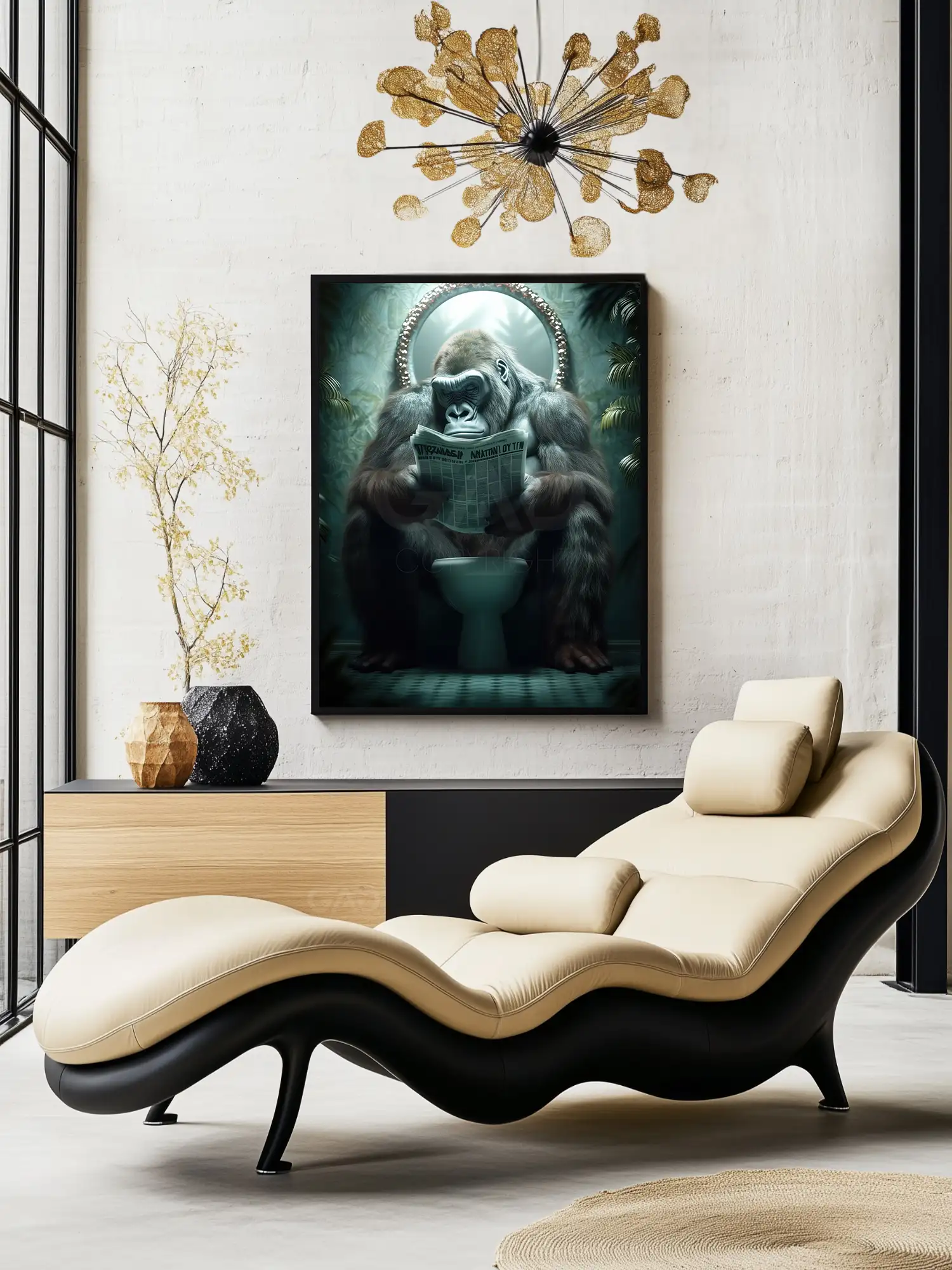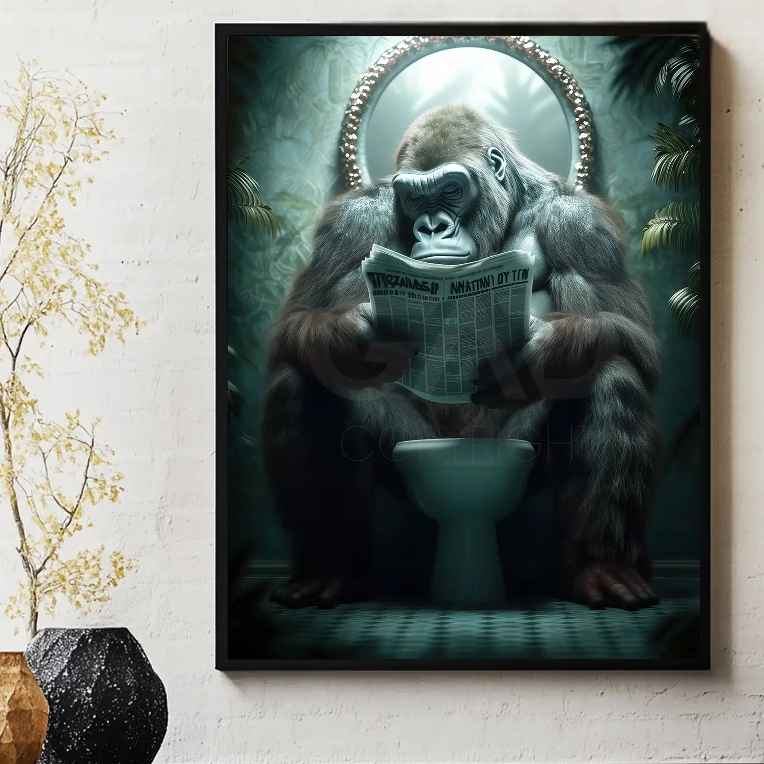 Perfect for animal lovers, humor enthusiasts, or anyone looking to add a playful touch to their living room, bathroom, or workspace, the Gorilla Toilet Poster is sure to entertain and brighten up your space.