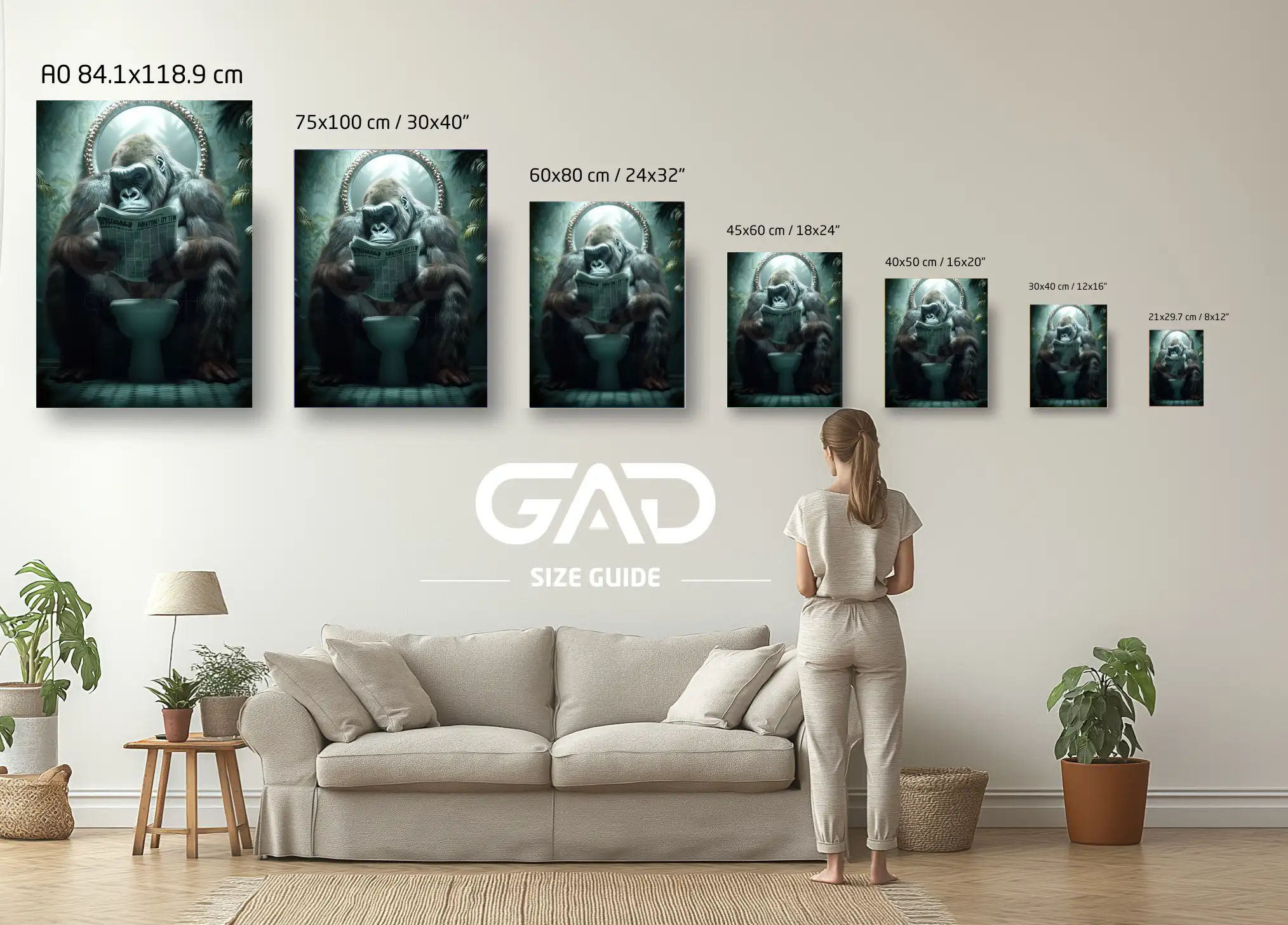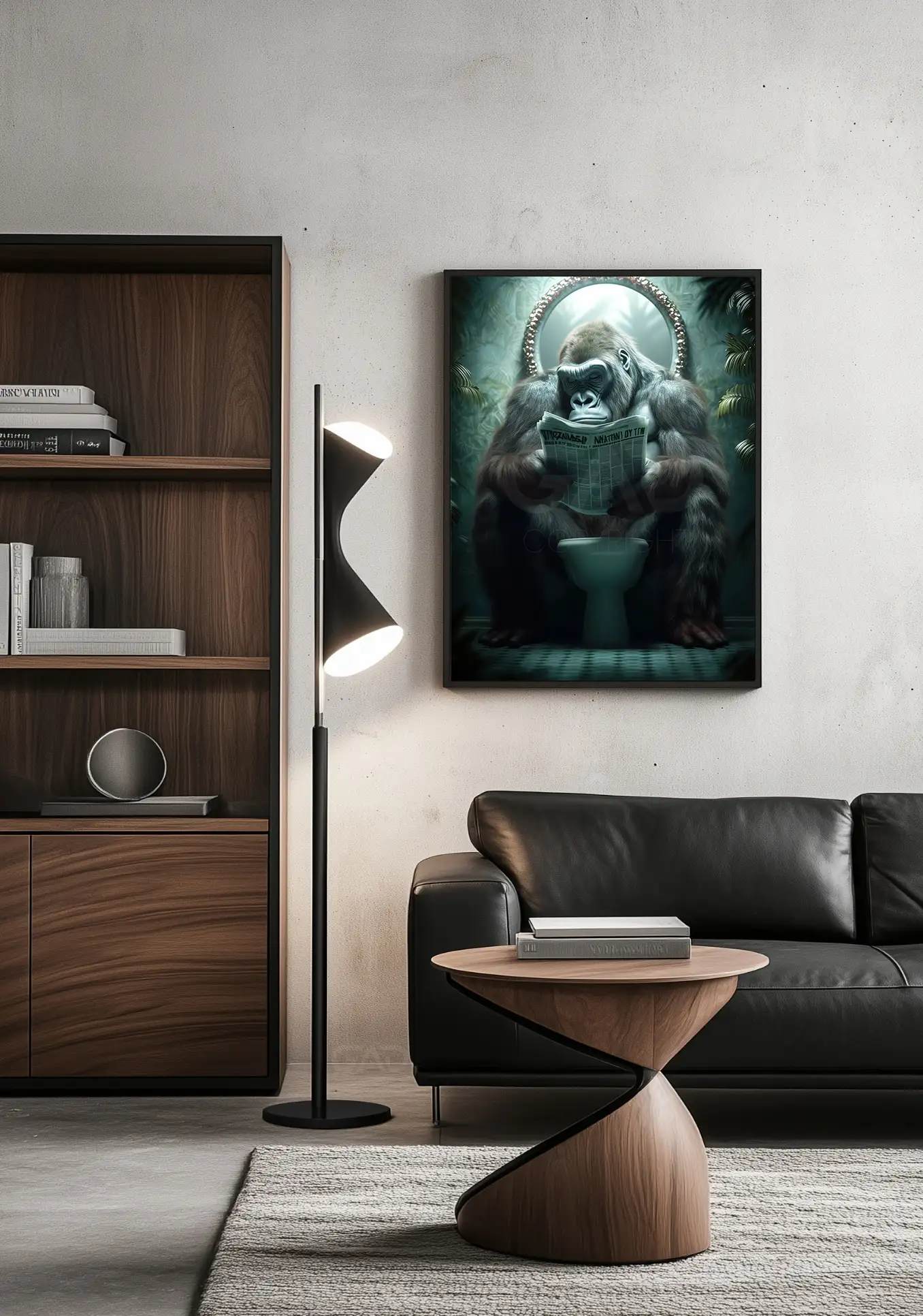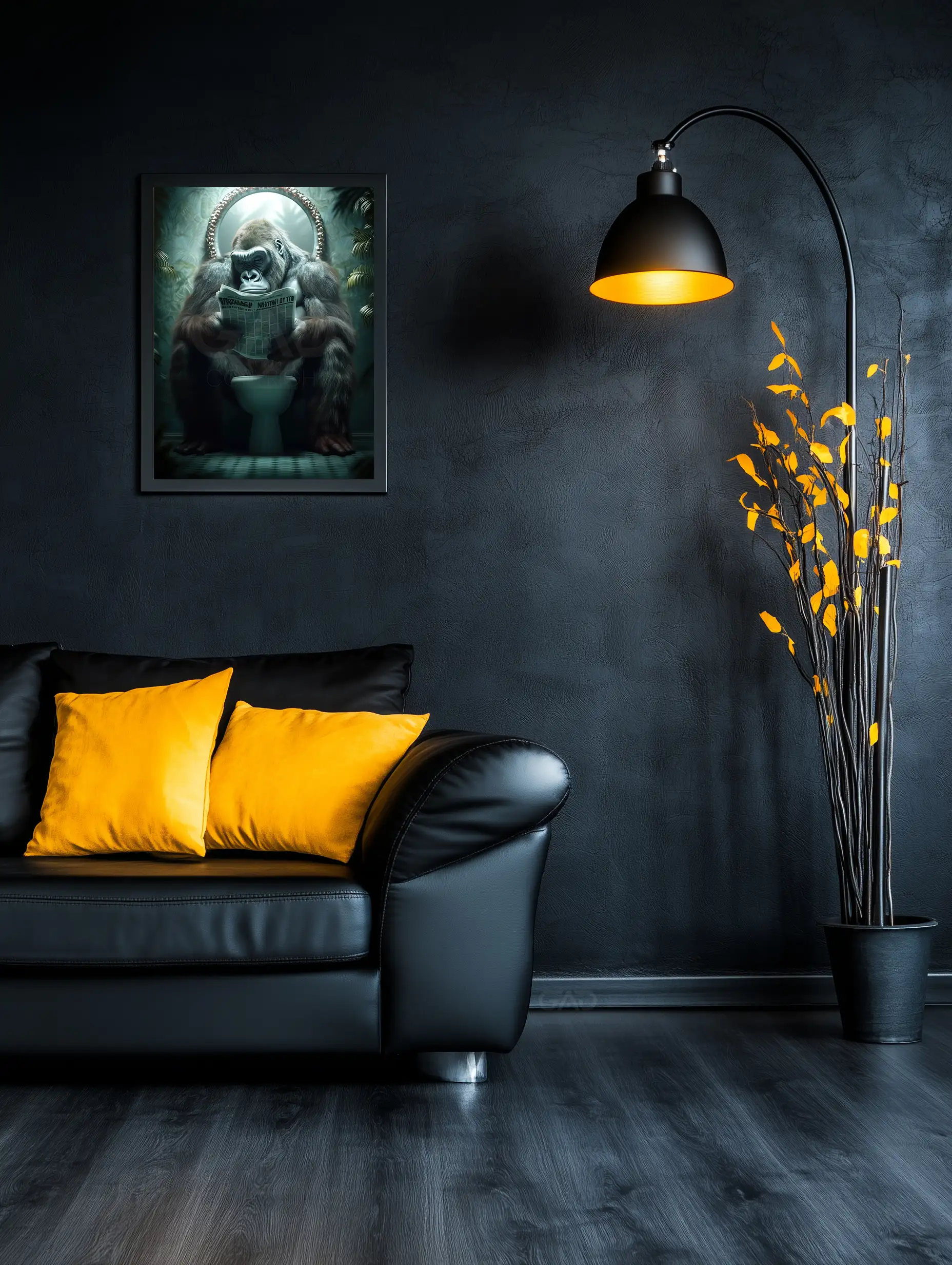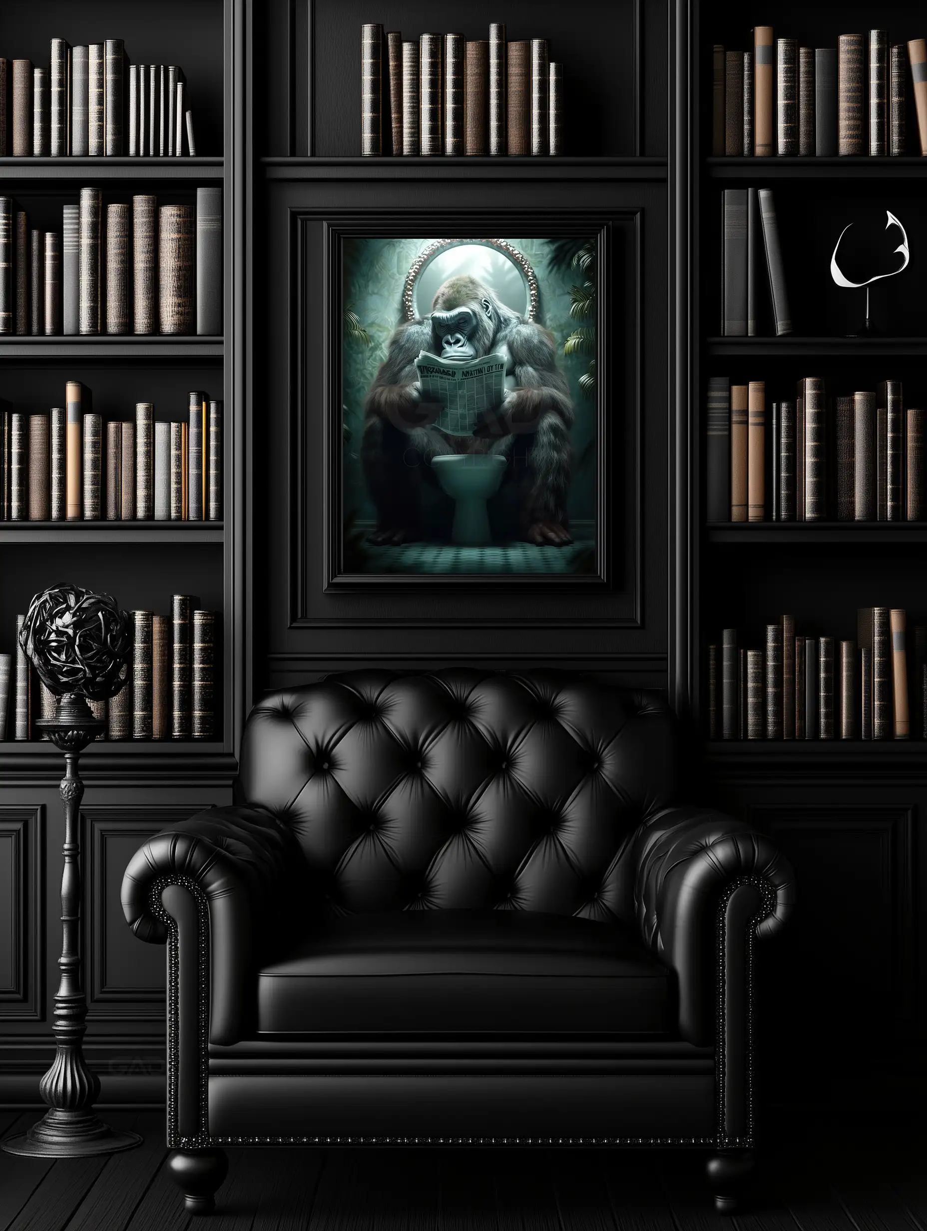 Perfect for animal lovers, humor enthusiasts, or anyone looking to add a playful touch to their living room, bathroom, or workspace, the Gorilla Toilet Poster is sure to entertain and brighten up your space.