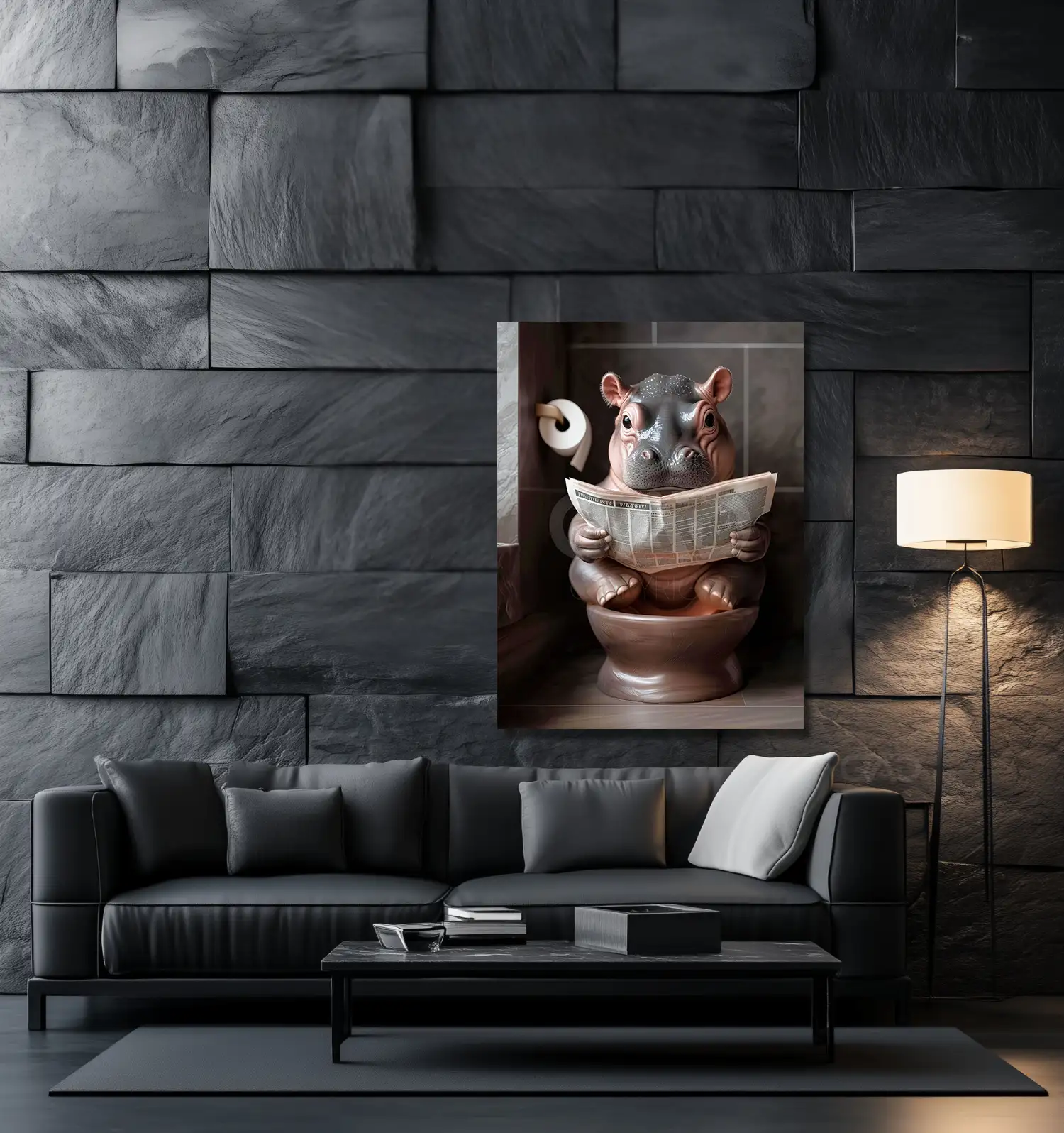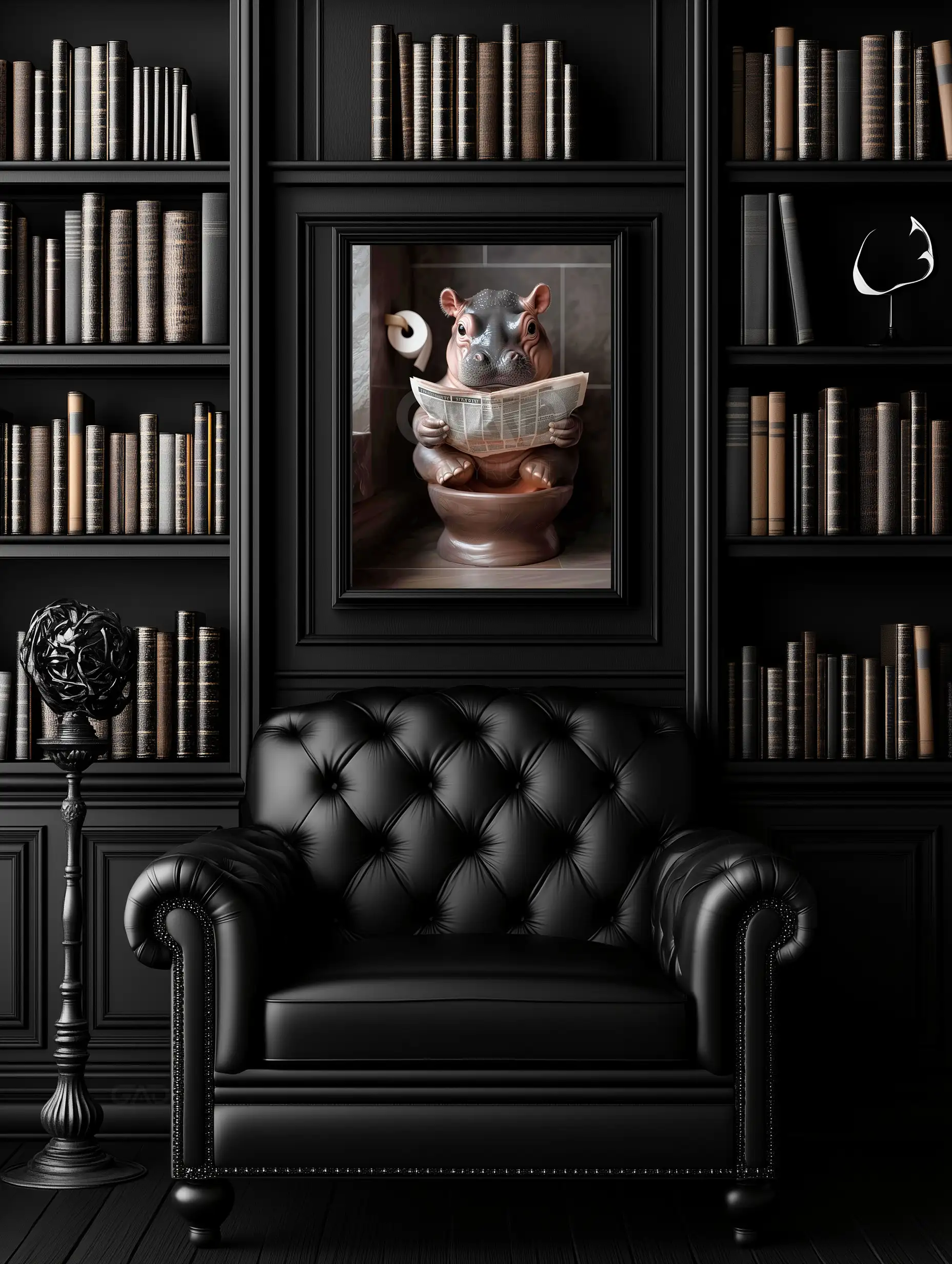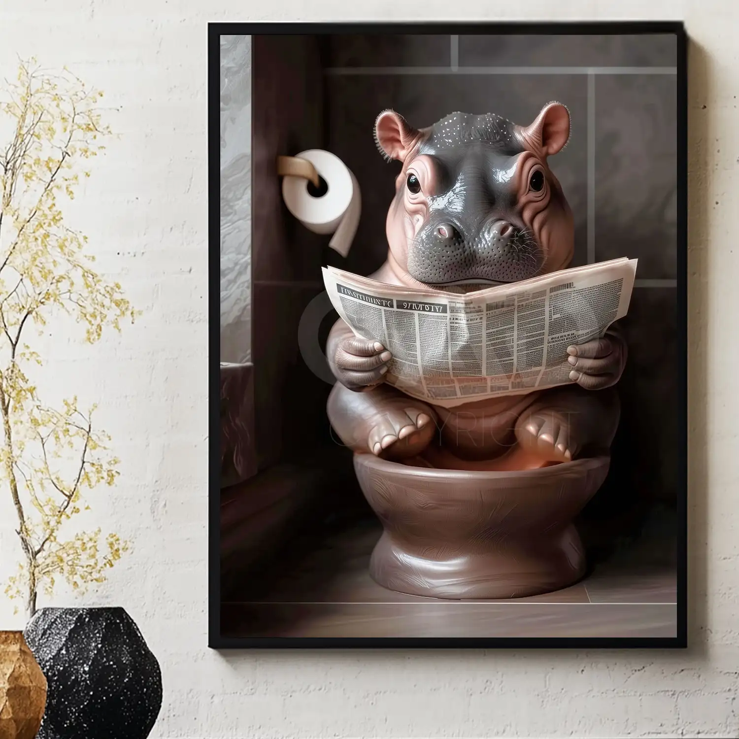 Transform your bathroom into a space of sophistication and amusement with this exclusive Hippo Calf’s Toilet Time artwork!