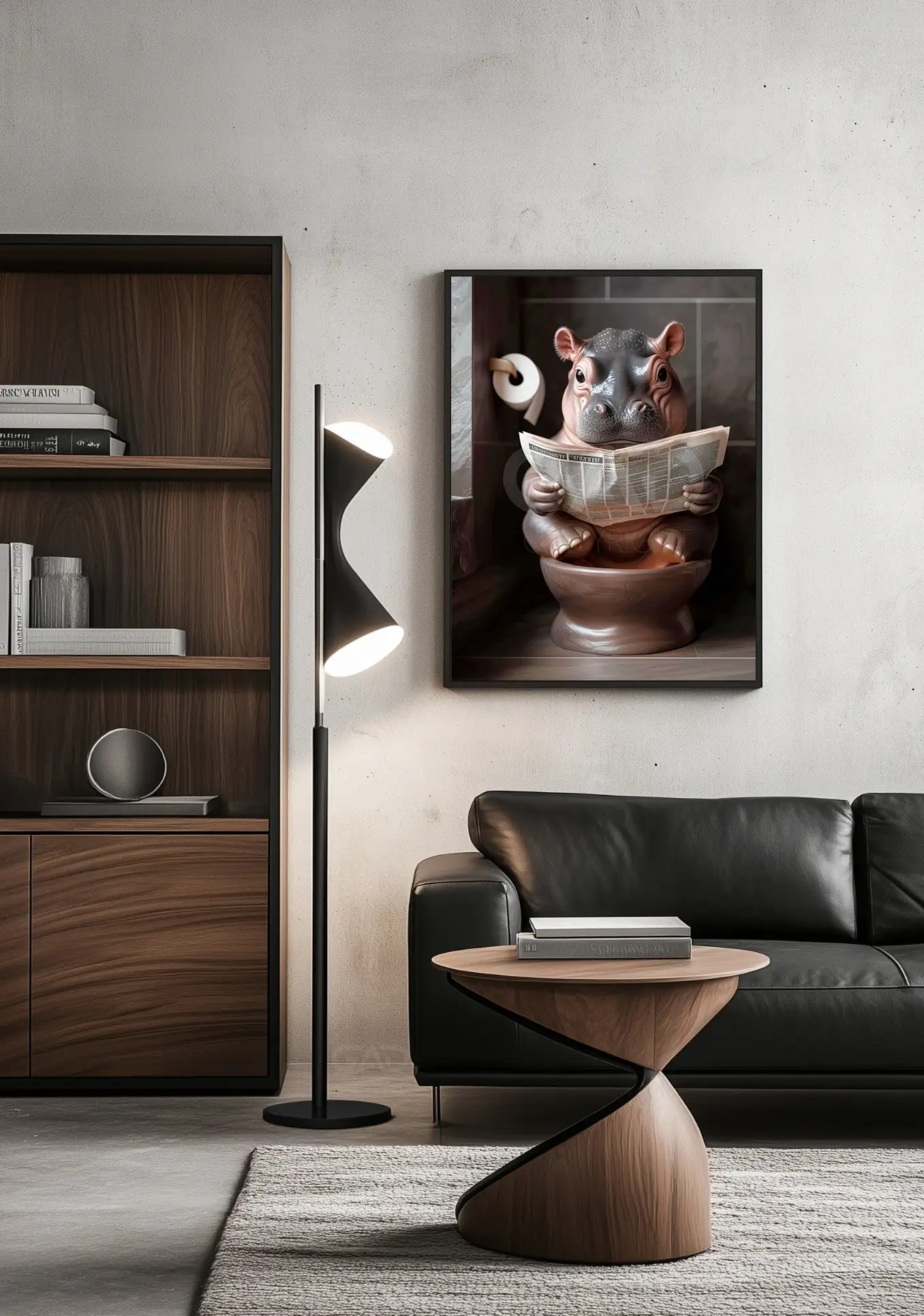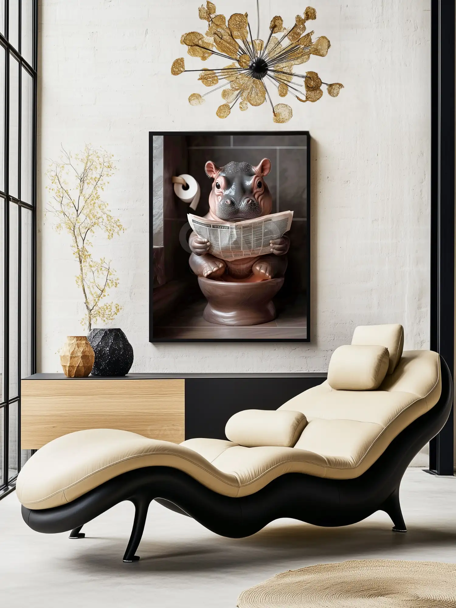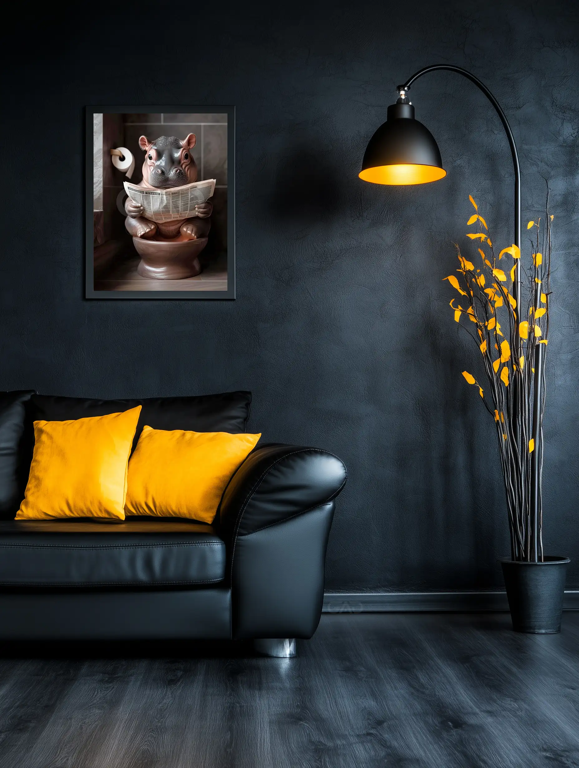 Transform your bathroom into a space of sophistication and amusement with this exclusive Hippo Calf’s Toilet Time artwork!